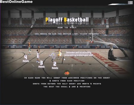 ゲームは、バスケットボールの選手のボールの軌道を調整して3ポイントシュートを決めて自分のチームを選択して相手チームと5ゲームで競うバスケットボールです