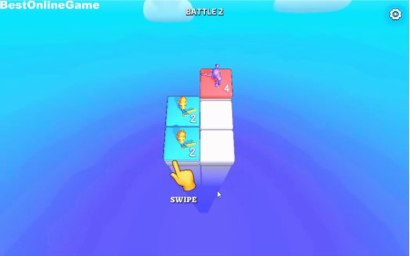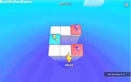 バトル2では、2の剣士のパネルが2枚あります。同じ数字の剣士は、合体させて4の剣士にして敵と戦わせて倒します