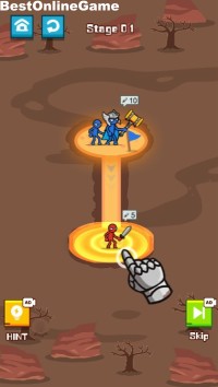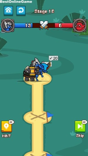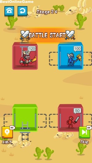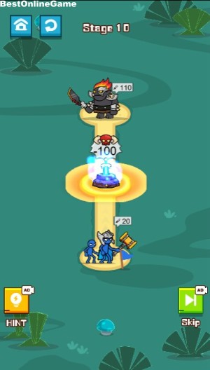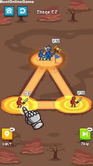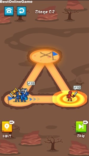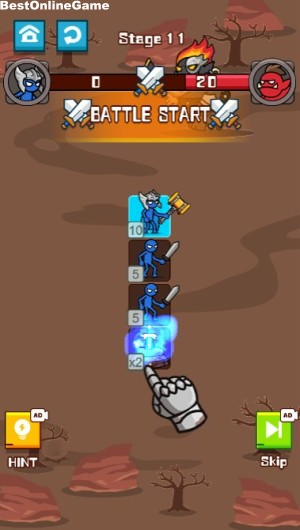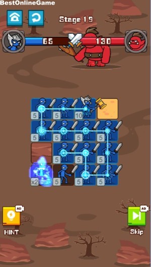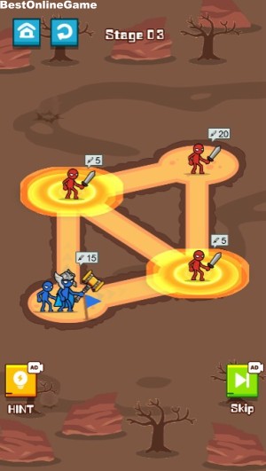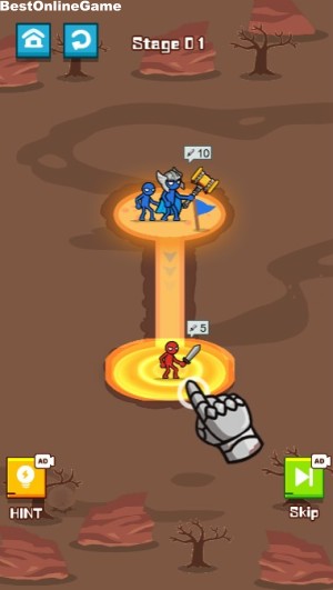 ゲームは、マントとハンマーの棒人間のキャラクターを移動して攻撃力の低い敵と戦わせて攻撃力を高めてすべての敵を倒してステージをクリアしていくバトル・パズルゲームです