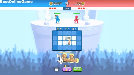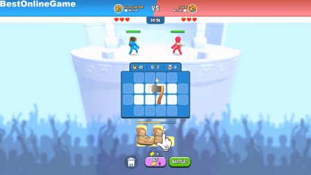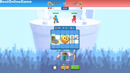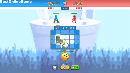 ゲームは、所持コインで斧やナイフ、防具などを出し同じアイテムを合体させて強化し空いているマスに設置して棒人間をバトルさせて勝利を目指す育成バトル・ストラテジーです