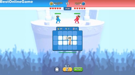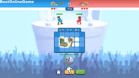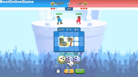 開始後、武器を持った棒人間を対決させて勝利するために、武器や防具などをマスに設置していきます