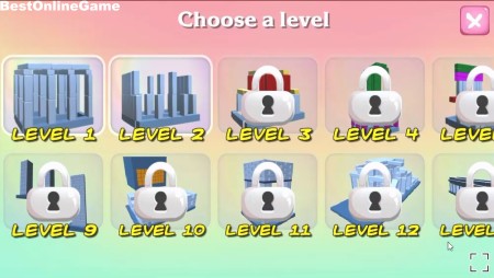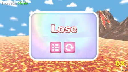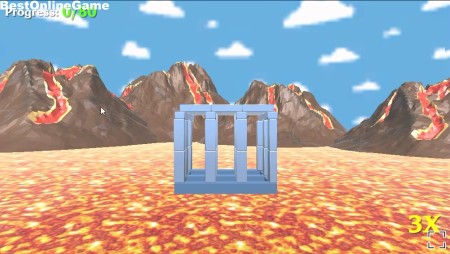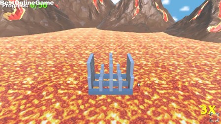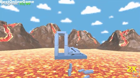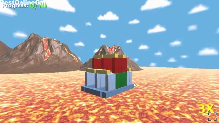 開始後、積み重ねられたブロックを各レベルで指定の数のトゲのついた玉を投げて指定されたポイント以上になるようにブロックを溶岩の中へ落としてクリアを目指します