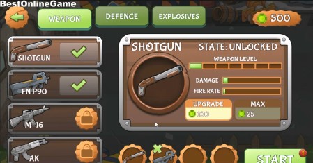 ゲームは、ショットガンやマシンガンの武器を切り替え各レベルで画面右から出てくる様々なゾンビを倒して宝石を獲得しアップグレードしてレベルをクリアしていくシューティングゲームです
