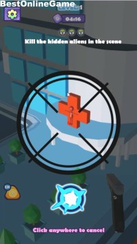 ゲームは、ビルや車、街路樹などに同化して隠れているエイリアンを制限時間内にすべて見つけてスナイパーライフルで撃って倒しレベルをクリアしていく3Dシューティングゲームです