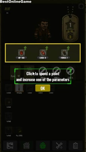 また獲得したポイントで、HP、ラッキー、力の3つの項目をアップグレードしていきます