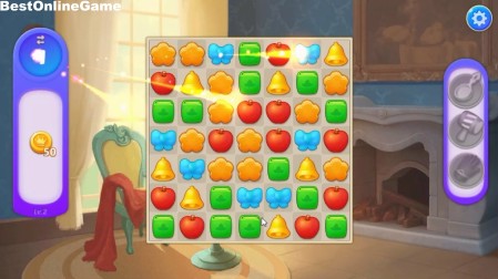 ゲームは、荒廃した豪邸を各ステージの指定の絵柄を指定数消してクリアして、チャプターの各ステージで各部屋などを綺麗にして完成を目指すパズルゲームです