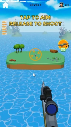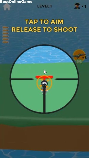 開始後、レベル1よりスタートとなり、スナイパーライフルで敵を倒してクリアします