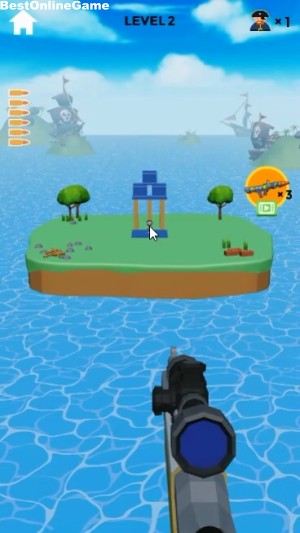 レベル2では、建物の下の敵を倒します。直接撃つか、建物を破壊して倒します