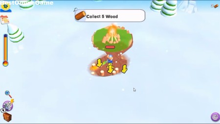 スタート後、焚き火のところにいるキャラクターを操作して、雪のエリアを溶かしていくことになります