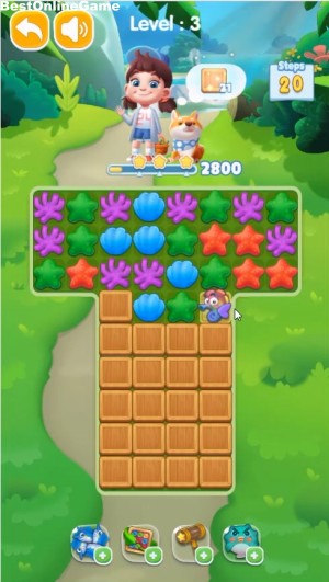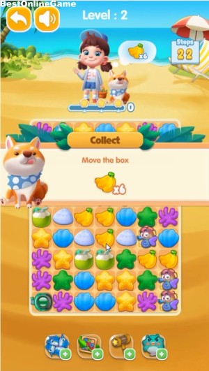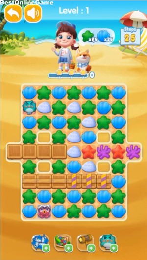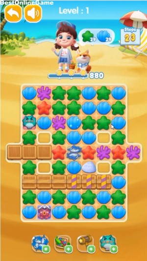 ゲームは、緑のヒトデ、青い貝、紫のサンゴなどの絵柄を縦横3つ以上揃えて消し各レベルのクリア条件を満たしてレベルをクリアしていくマッチ3パズルゲームです