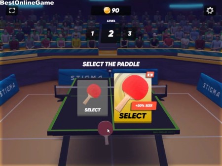 ゲームは、中央の卓球台の手前のラケットを操作してピン球をタイミングよく打ち返して勝利しレベルをクリアしていく3D卓球ゲームです