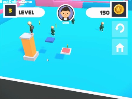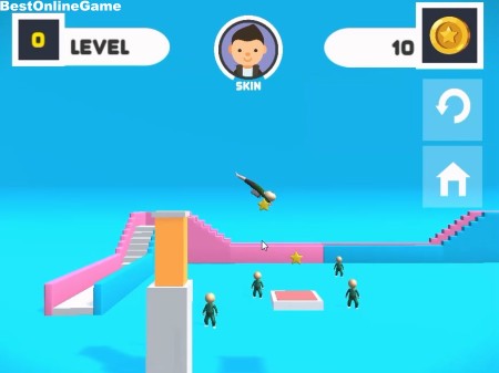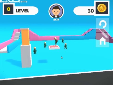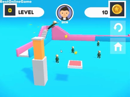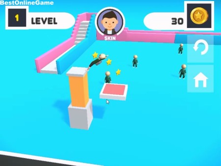 ゲームは、飛び込み台の上からジャンプと回転を操作してイカゲームのキャラクターを台の上に無事に着地させてレベルをクリアしていく3Dアクションゲームです