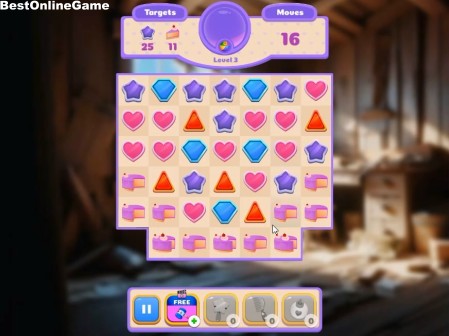 ゲームは、縦横に同じ絵柄を3つ以上並べて消しレベルをクリアして星を集め集めた星で女の子をドレスアップしていくマッチ3パズルです