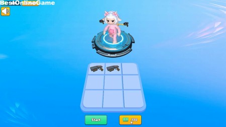 クリア後、獲得したお金で9つのマスに銃を追加して、同じ銃を重ねてアップグレードして強化していきます