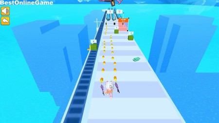 ゲームは、両サイドに銃を装備したキャラクターを左右にスライドして威力・連射速度アップのゲートを通過して、より多くのお金を獲得して装備をアップグレードしていく3Dシューティングゲームです