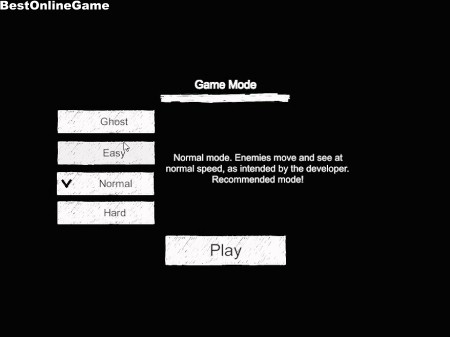 次に難易度選択画面が表示されます。Ghostモードは、敵のモンスターに見つからないゴーストモードで最も簡単です。Easyモードは、敵の動きがスローと、敵の視界が狭くなりノーマルよりも簡単です。