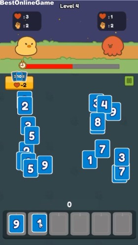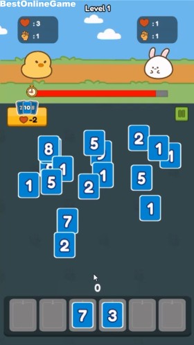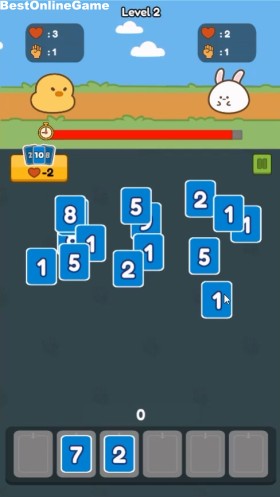 ゲームは、2つのモードから1つを選択して画面下にカードをスライドして合計が指定の数になるようにしてカードを消して敵を攻撃してレベルアップしていく脳トレ・パズルゲームです