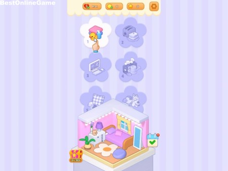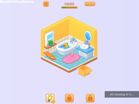 各レベルの各部屋で段ボールから出てきた家具やアイテムを正しい場所に制限時間内にすべて設置してレベルをクリアしていきます