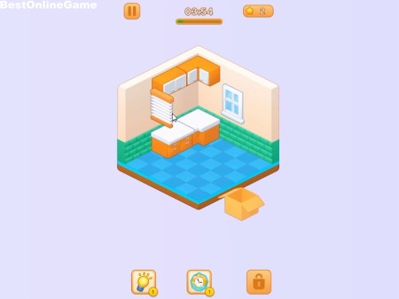 ゲームは、リビングやお風呂、台所などの各部屋のレベルで段ボールから出てくる家具や生活用品を正しい場所に設置してレベルをクリアしていく3Dパズルゲームです