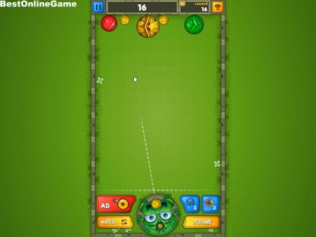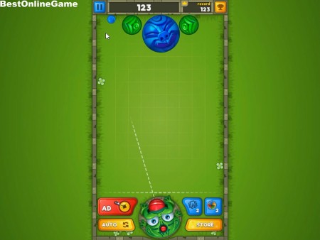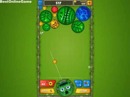 開始後、画面下から青・赤・黄色などのボールを撃ち出して、同じ色のボールにあててボールを合体させて、1つ大きなボールに変えてボールを巨大にしていきます