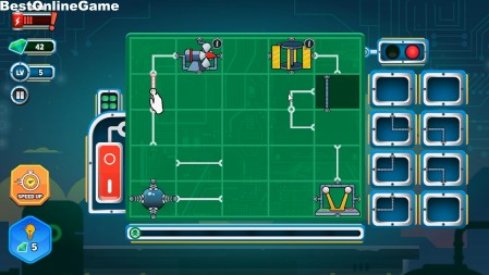 ゲームは、横・縦のラインやくの字のラインをパネルにセットして電気が装置へと流れるようにしてレベルをクリアしていくパズルゲームです
