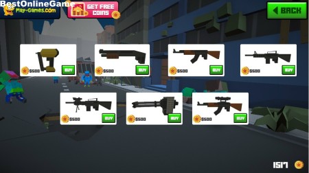 レベルをクリアして獲得してコインは、最初の画面のショップで新たな武器の購入やスキンの変更に利用します