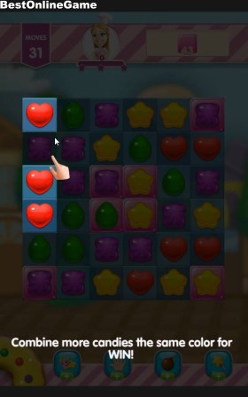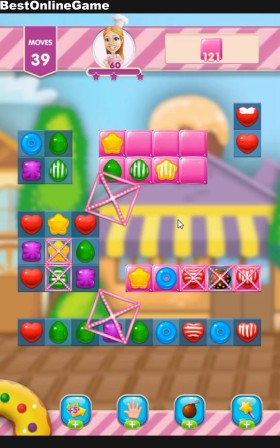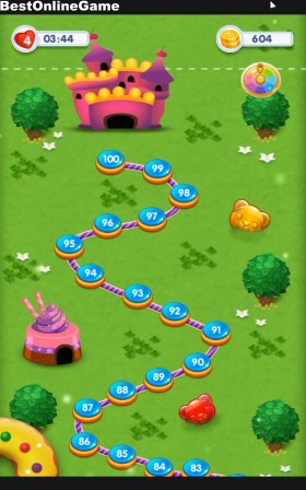 ゲームは、ハートや星などのキャンディーを縦横に3つ以上そろえて消し各レベルのクリア条件を満たしてマップの最終レベル100を目指すマッチ3パズルゲームです