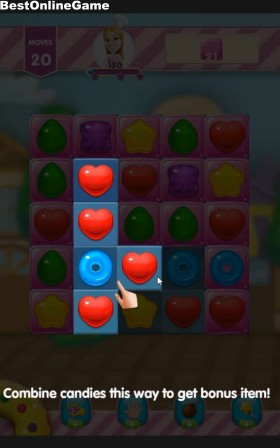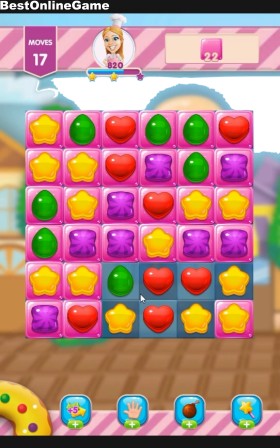 開始後、ハートや星などのキャンディーを縦横3つ以上そろえて消していきます