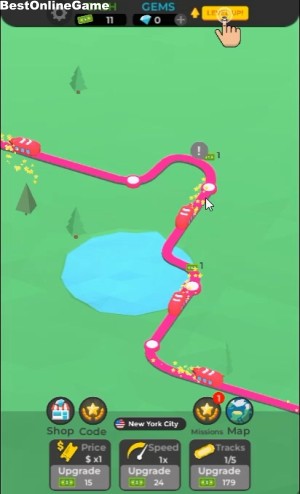 ゲームは、線路を走る電車が駅を通過してお金を貯め、電車と線路、都市をアップグレードして都市を発展させていく都市育成シミュレーションゲームです