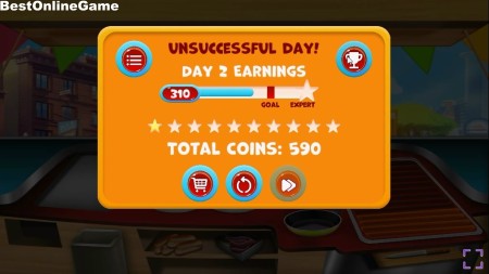 ゲームは、ワゴンでパンと焼いたウインナーをはさみケチャップ、マスタードをかけ注文の商品を提供して各レベルの目標金額に到達してレベルをクリアしていくシミュレーションゲームです