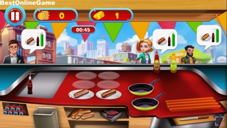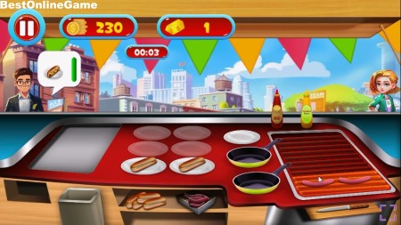 注文のホットドックを時間内に提供して目標金額のお金を稼ぎ、レベルをクリアしていきます