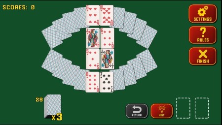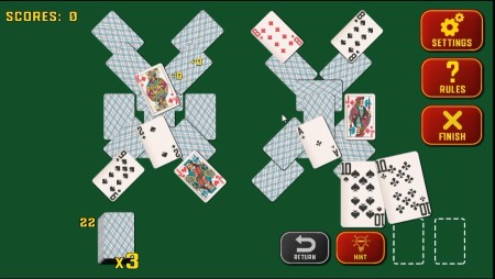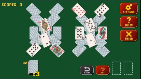 ゲームは、テーブルに並べられたトランプのカードから同じ数字のカードを見つけてカードを消し、すべてのカードを消してレベルをクリアしていくソリティアです