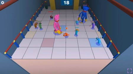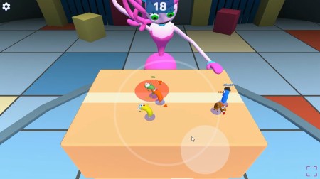 段ボール箱の上のステージでは、ソーセージを操作して、大きな人が叩く手から逃げ続けて生き残ります