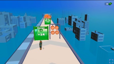 ゲームは、弾を撃ち続ける銃を左右に移動して、飛距離、パワー、連射速度をアップするゲートを通過してステージ最後にお金を稼ぎ、銃をアップグレードしていく3Dシューティングゲームです