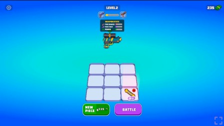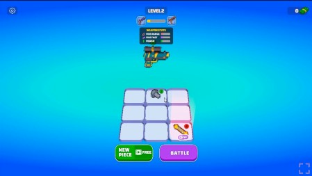 クリア後、獲得したお金で、銃の部品を3x3のマスの中に出し、同じ部品を合体させてより強力な銃の部品を作り出して銃にセットします
