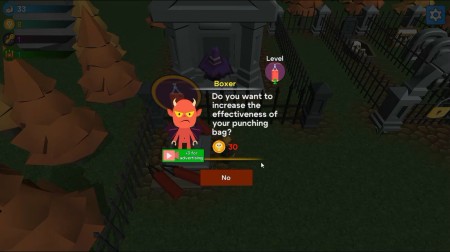 サンドバックでパワー、ガイコツでコイン、宝箱で鍵を集め、キャラクターをアップグレードして、新たなエリアのロックを解除していきます