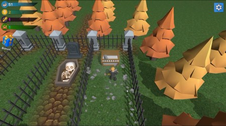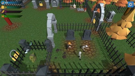 画面右下のお墓のところでガイコツを倒すことでコインを獲得できます。
