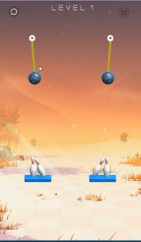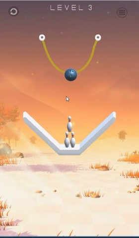 ゲームは、ロープでぶら下がっているボウリングのボールをロープを切って下に落としピンをすべて倒してレベルをクリアしていくパズルゲームです