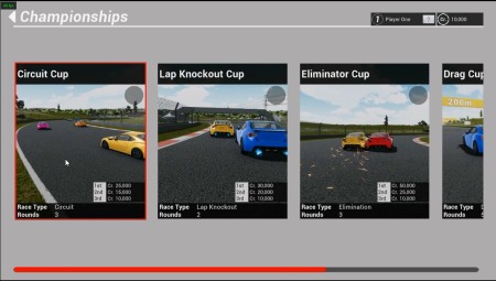 チャンピオンシップを開始すると、まずは、サーキットカップからスタートとなり、1位から3位でゴールすることでポイントが入ります