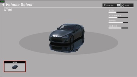 最初のコースを選択後、車の選択画面が表示されます。左下のGT86をクリックします
