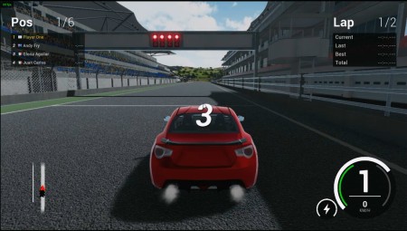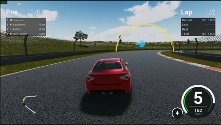 スタートすると6台の車で競い、2周コースを走り勝負します