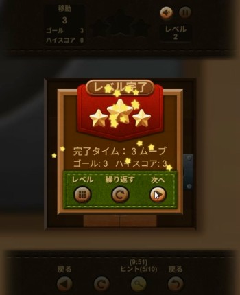 レベル3は、7回の移動でつなげられると星3つ獲得となります。星を獲得できなくてもクリアはできます