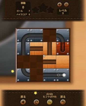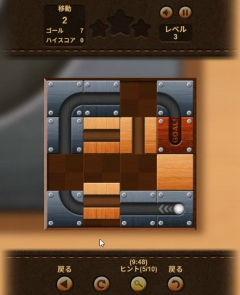 開始後、ボールを転がしてゴールまで移動させるために、パネルに描かれた通路をスライドしてゴールまでつなげてクリアします