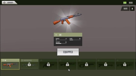 ARMORYでは、現在の武器、そして他の武器がロックされています。レベルをクリアしていきロックを解除して利用できるようにします