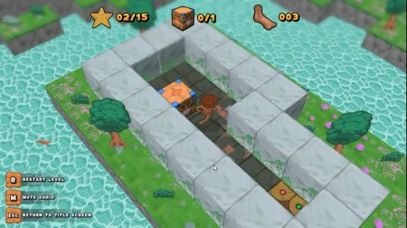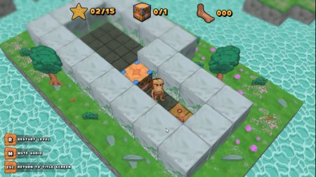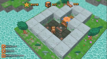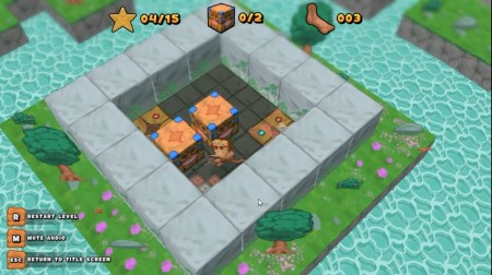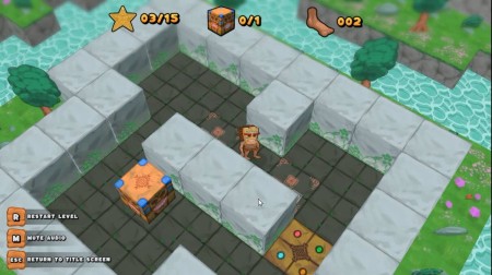 ゲームは、石で囲まれた各レベルのステージで人を操作して木箱を押して、木箱を指定の位置まで移動させてレベルをクリアしていく3D倉庫番パズルゲームです