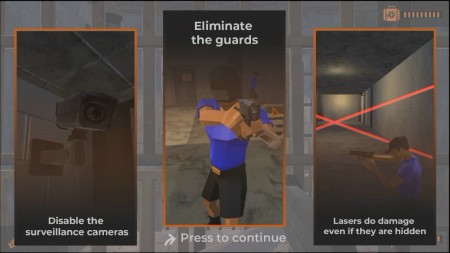 ゲームは、監視カメラ、敵のガードマンを倒し、レーザーを避けて牢獄からの脱出を目指します