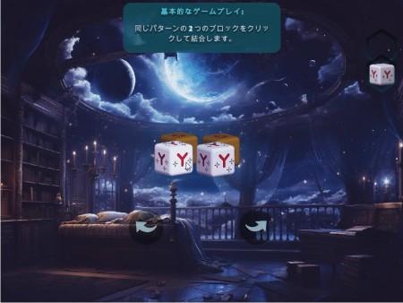 スタートすると、4角形に描かれた絵柄から同じ絵柄を選択して消してクリアしていく3D麻雀牌パズルです