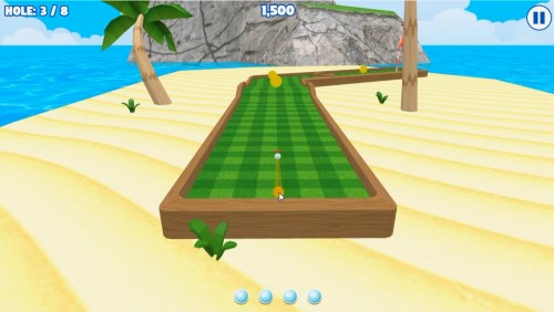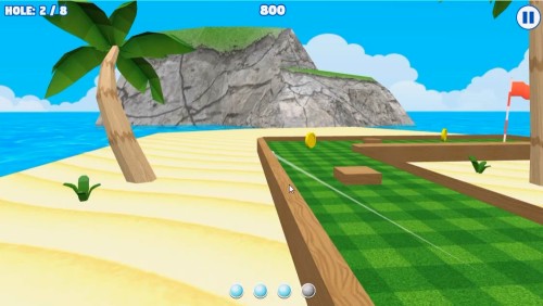 ゲームは、ボールを打つ方向とパワーをスライドして決めボールを打ち全8ホールの各コースをクリアしていく3Dパットパット・ゴルフゲームです