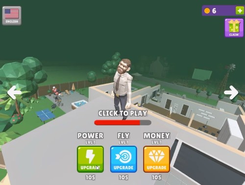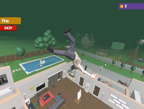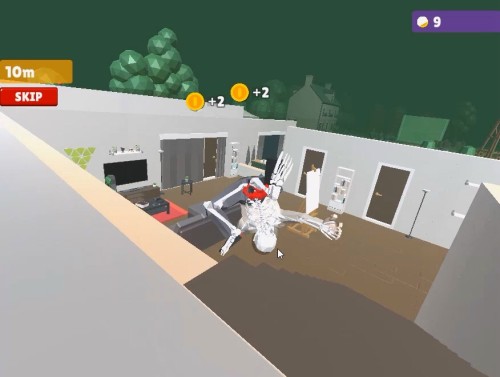 ゲームは、ビルの屋上にいる人形を吹き飛ばして下に落としてダメージを与えて報酬を獲得してアップグレードし、より遠くへと飛ばしていく3Dアクションゲームです