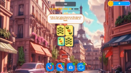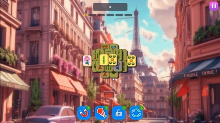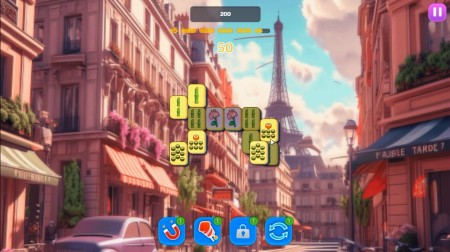 ゲームは、パリのレベルからスタートしラストのラスベガスのレベルクリアを目指す同じ麻雀牌を選択して消してレベルをクリアしていく麻雀牌パズルゲームです